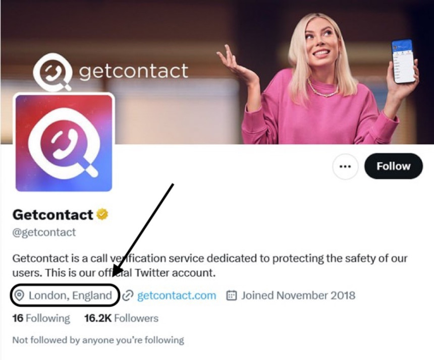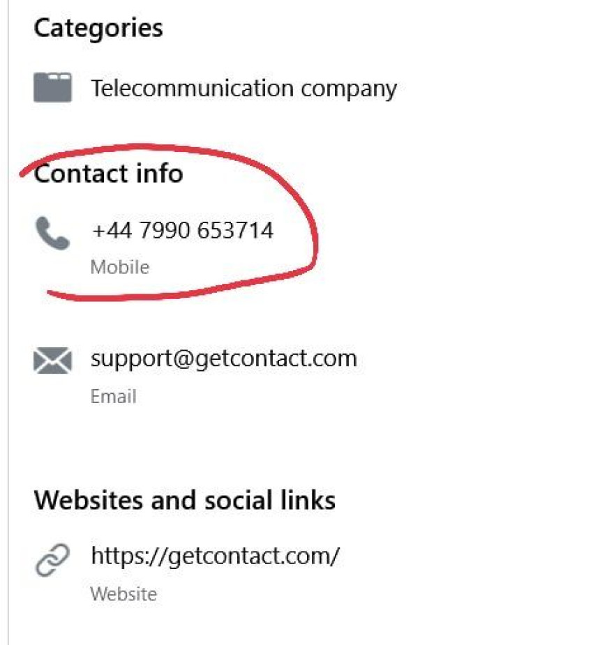 جميع خيارات التواصل مع getcontact إما رقم بريطاني او برتغالي، فلو نظرنا الى حسابهم في الفيس بوك سنجد ان رقم التواصل بريطاني. طيب من الذي يدير صفحتهم على الفيس بوك، هل هم اشخاص من مقرهم الرئيسي في بريطانيا كما يزعمون؟!
