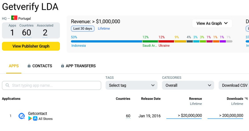 عند البحث عن الشركة البرتغالية getverifylda لفت نظري ان الشركة ليس لديها مشاريع او تطبيقات سوى تطبيق واحد. وهو تطبيق getcontact!؟