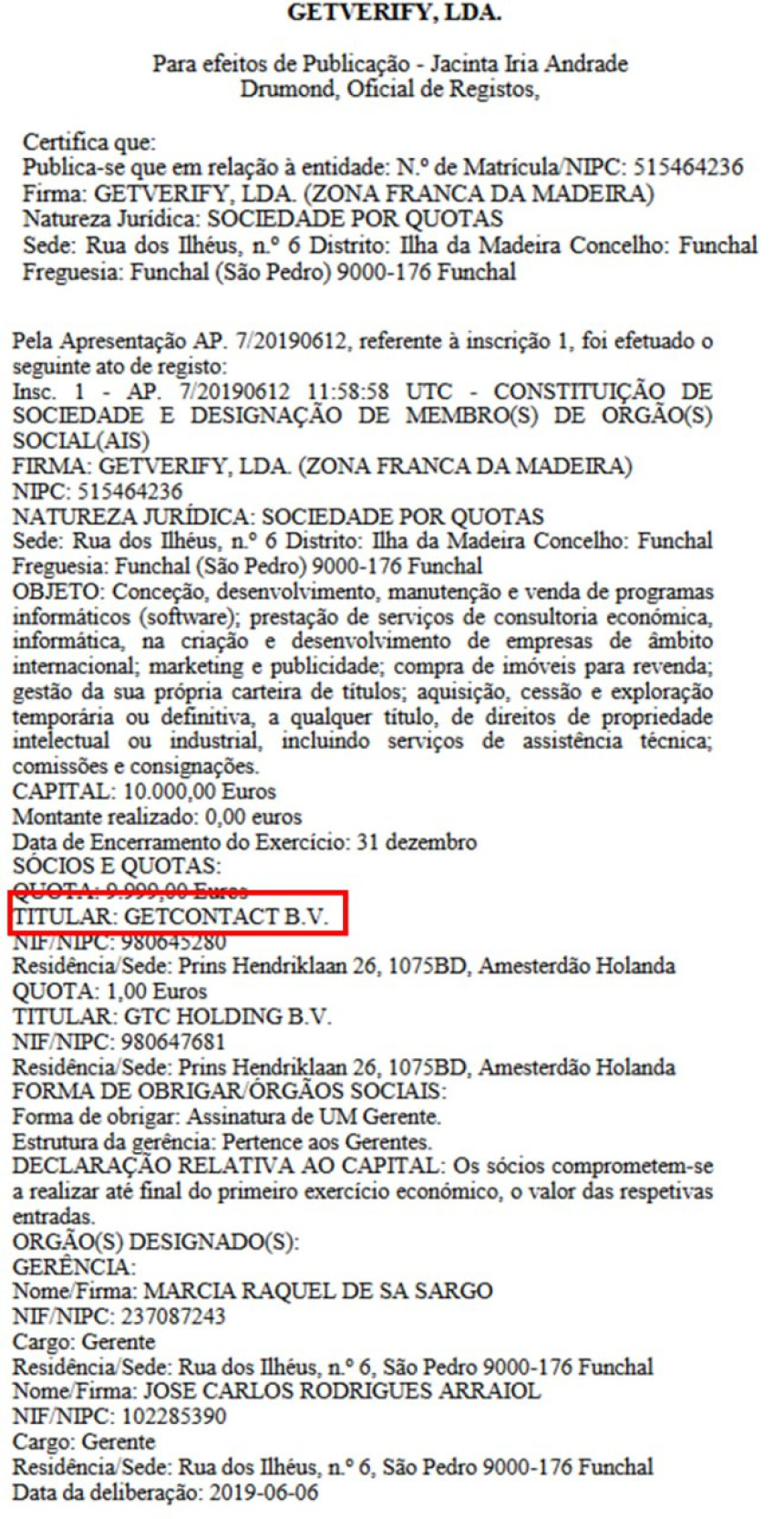 مؤسس شركة getverifylda هي شركة getcontact برأس مال 10,000 يورو وشركة GTC هي ايضا شركة فرعية لشركة getcontact.